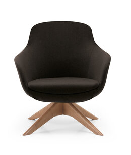 Poltrona moderna con basamento girevole in massello di frassino, verniciatura personalizzabile in tinte da campionario. Seduta e schienale in poliuretano espanso schiumato a freddo; disponibile in diversi rivestimenti: stoffa, ecopelle o pelle. Seduta dal design moderno che si adatta a diversi usi come casa, contract, navale. Particolarmente adatta per ristorante, bar, lounge,b&b, hotel, reception, caffè o sala d'attesa. Imbottitura certificata ignifuga 1IM , francese M4 e California 117:2013.