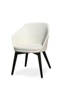 Poltroncina moderna in massello di faggio, verniciatura personalizzabile in tinte da campionario. Seduta e schienale in poliuretano espanso schiumato a freddo; disponibile in diversi rivestimenti: stoffa, ecopelle o pelle. Seduta dal design moderno che si adatta a diversi usi come casa, ufficio, contract, navale. Particolarmente adatta per ristorante, bar, b&b, hotel, reception, caffè, sala riunioni o sala d'attesa. Imbottitura interna certificata ignifuga 1IM, francese M4 e California 117:2013.Su richiesta disponibilità di basamento autoallineante.