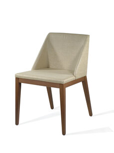 Sedia dallo stile moderno in massello di faggio o frassino. Verniciatura personalizzabile in tinte da campionario. Struttura in multistrato imbottita in poliuretano espaso elastico, disponibile in diversi rivestimento: stoffa, ecopelle, pelle. Seduta adatta sia all'uso casa che al contract per l'arredamento di ristorante, bar, hotel, b&b, caffè, reception, sala d'attesa.