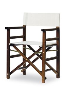 Sedia con braccioli dal design moderno in massello di faggio. Verniciatura disponibile nei colori naturale, noce, ciliegio, mogano, nero e laccato bianco. Seduta e schienale disponibile in diversi materiali come stoffa, tessuto poliestere o eco pelle; Questa sedia pieghevole in stile regista è adatta a qualsiasi tipo di uso: interno, esterno, casa, navale e contract dove risulta essere estremamente versatile e ideale per: ristorante, bar, caffè, b&b, reception, lounge, sala d'attesa, catering, sala convegni etc. Versione arricchita da vestina con gonna lunga sfoderabile.