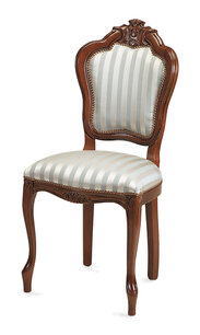 Sedia dal design classico in massello di faggio, verniciatura personalizzabile in tinte da campionario. Seduta e schienale imbottiti in poliuretano espaso elastico disponibili in diversi rivestimenti: stoffa, ecopelle e pelle. Seduta adatta per diversi usi: casa, casa di riposo, navale, contract, bar, ristorante, hotel, b&b,lounge caffè, reception, sala d'attesa etc. Per uso intensivo consigliamo inserimento di rinforzi a vista.