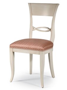 Sedia dal design classico in massello di faggio, verniciatura personalizzabile in tinte da campionario. Seduta imbottita in poliuretano espaso elastico disponibile in diversi rivestimenti: stoffa, ecopelle e pelle. Seduta adatta per diversi usi: casa, casa di riposo, navale, contract, bar, ristorante, hotel, b&b,lounge caffè, reception, sala d'attesa etc. Per uso intensivo consigliamo inserimento di rinforzi a vista.